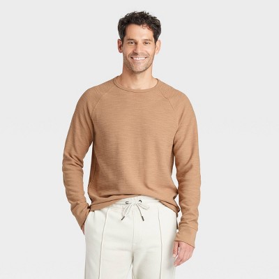 Men S Long Sleeve Textured T Shirt Goodfellow Co Brown Xl Target